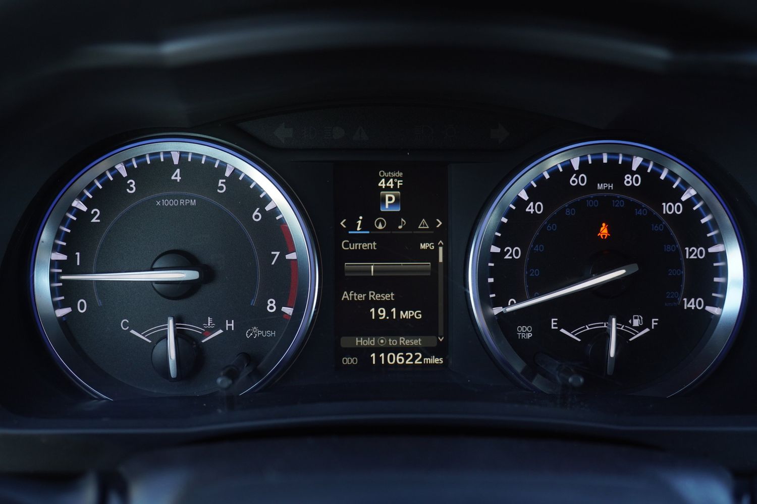 Low level warnings: Low level warning for fuel, washer fluid and brake fluid