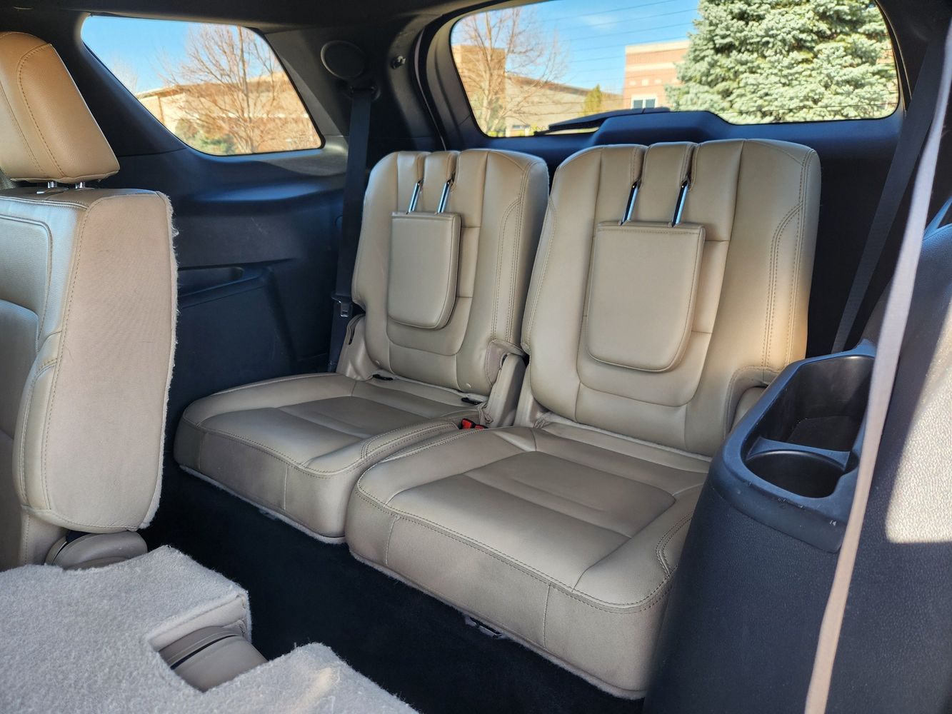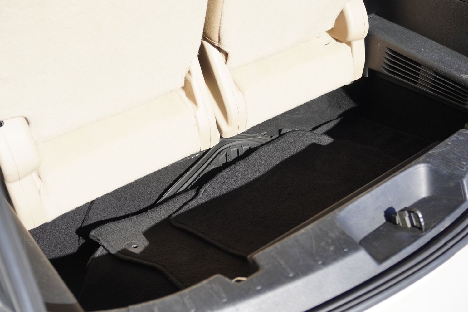 Third-row seatback upholstery: Carpet third-row seatback upholstery