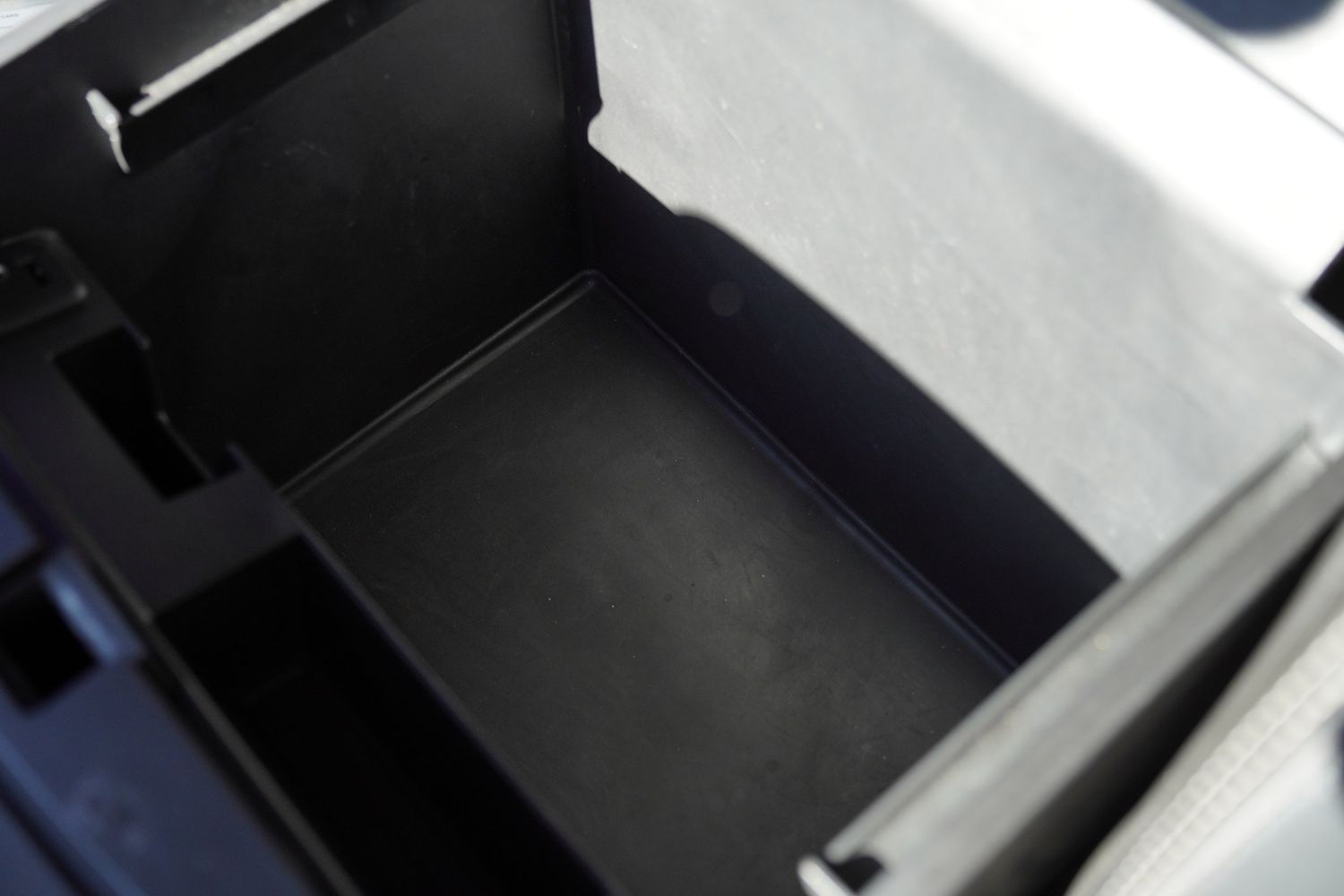 Floor console storage: Covered floor console storage