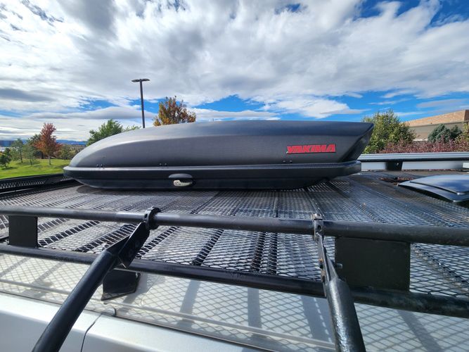 Full Roof Rack – grated for standing, Yakima gear box, Fiama awning