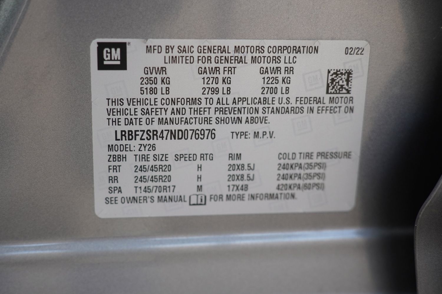 Interior 120V AC power outlets: 1 interior 120V AC power outlet
