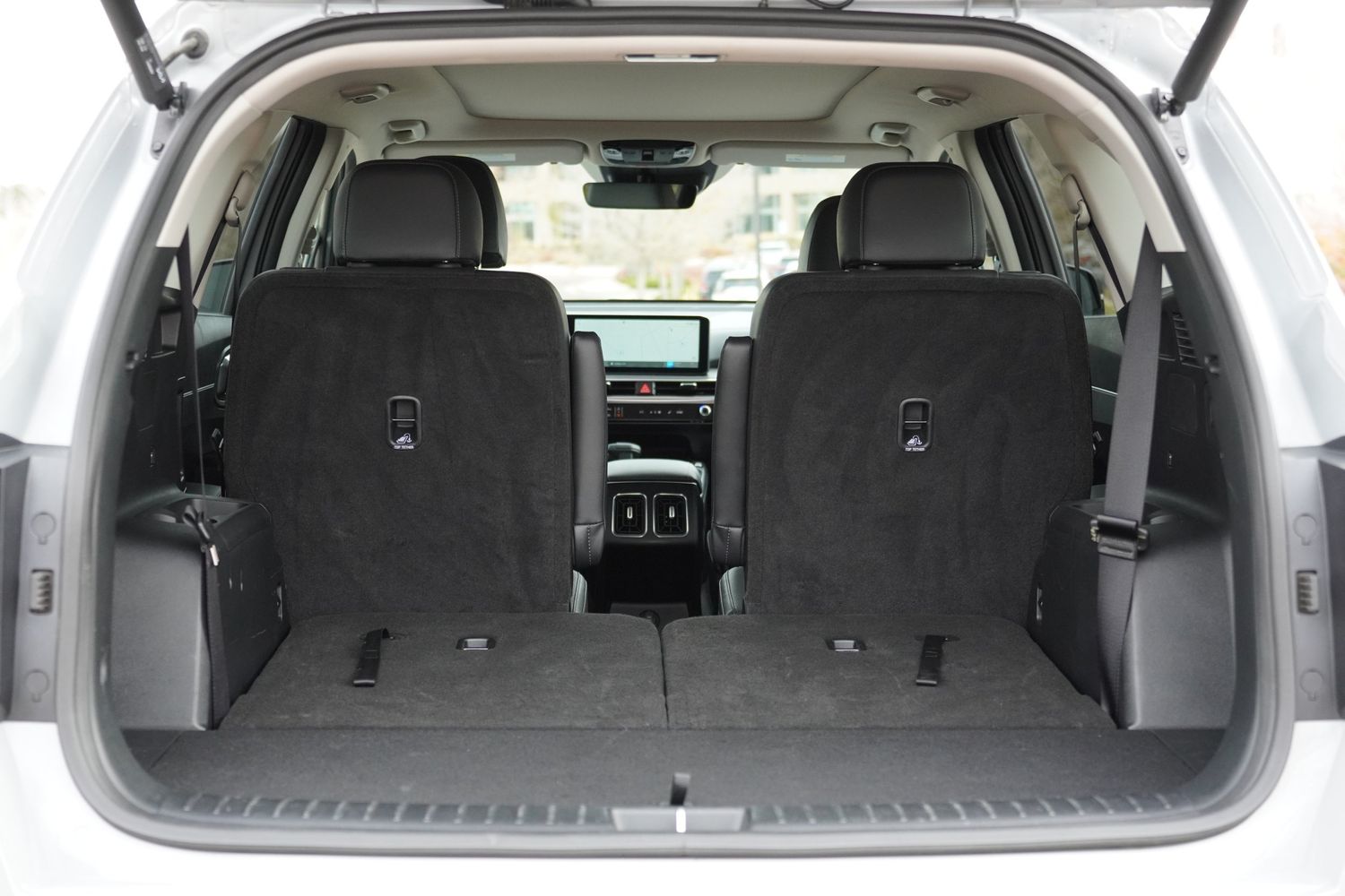 Third-row seatback upholstery: Carpet third-row seatback upholstery